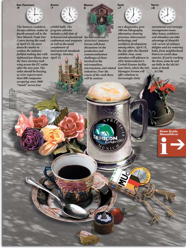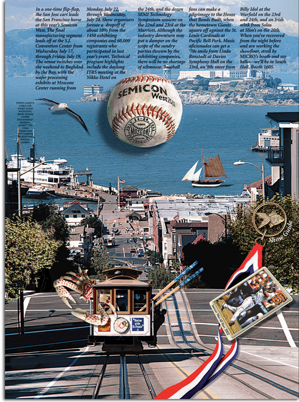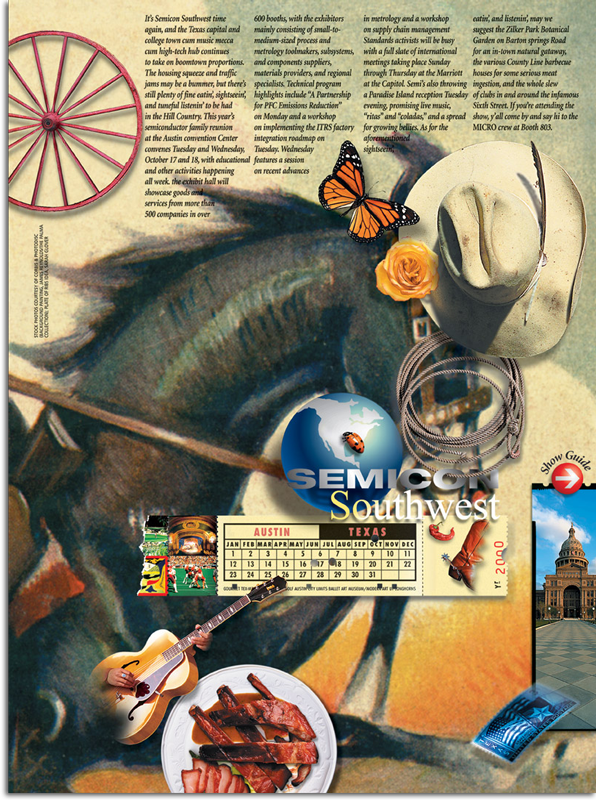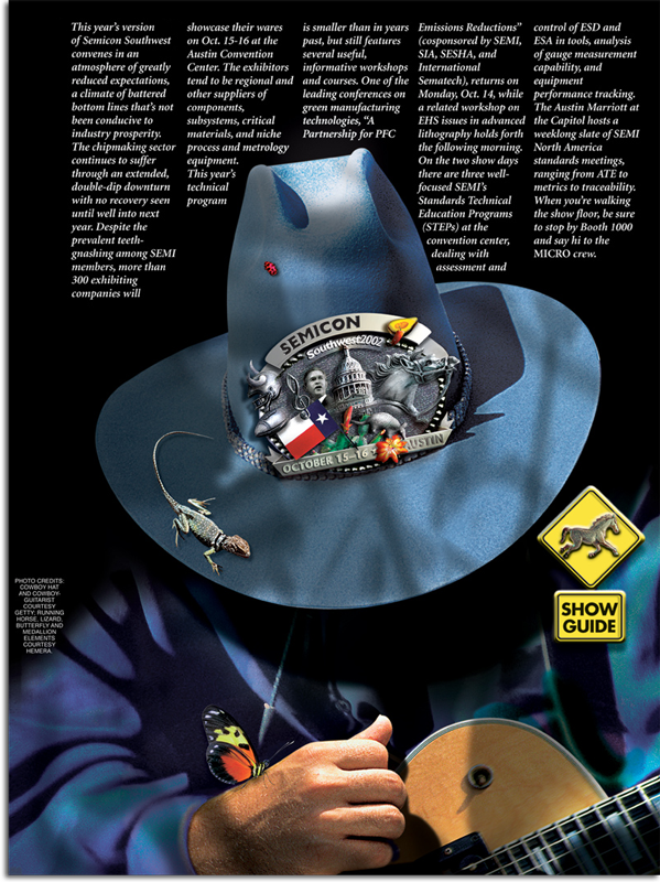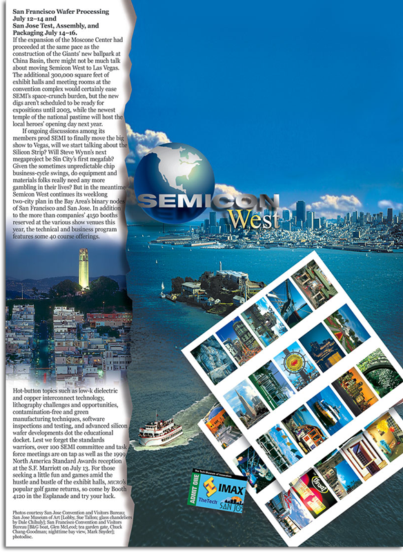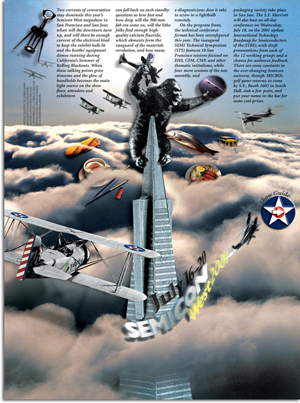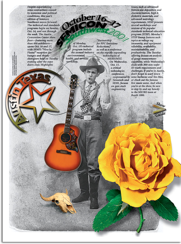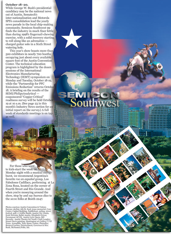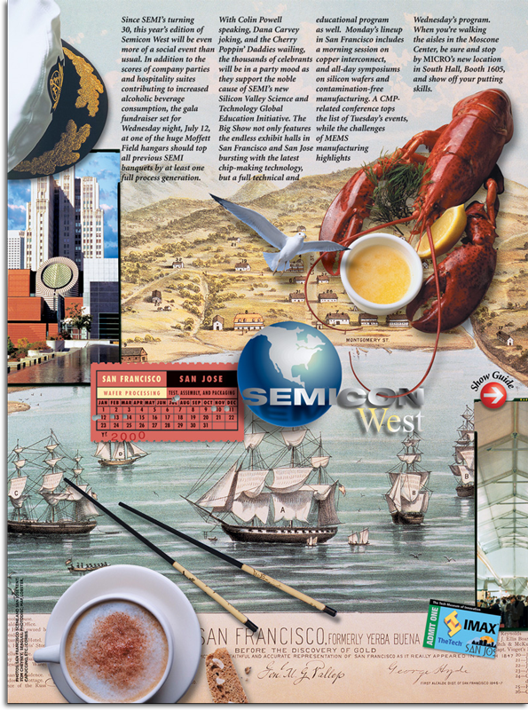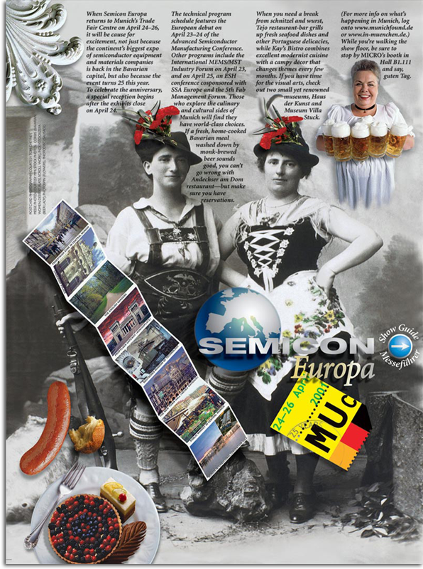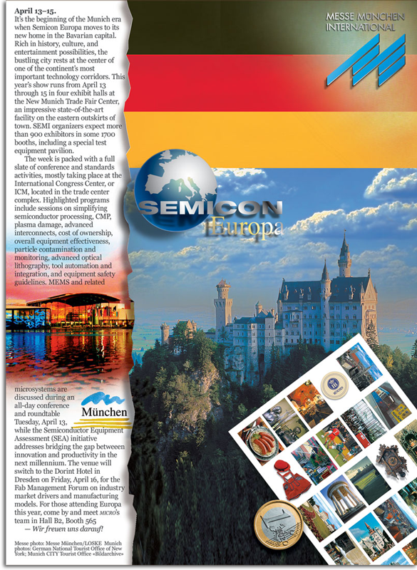 Eleven from series of MICRO magazine print ads promoting international silicon wafer industry trade shows Editor-in-chief ◳Tom Cheyney